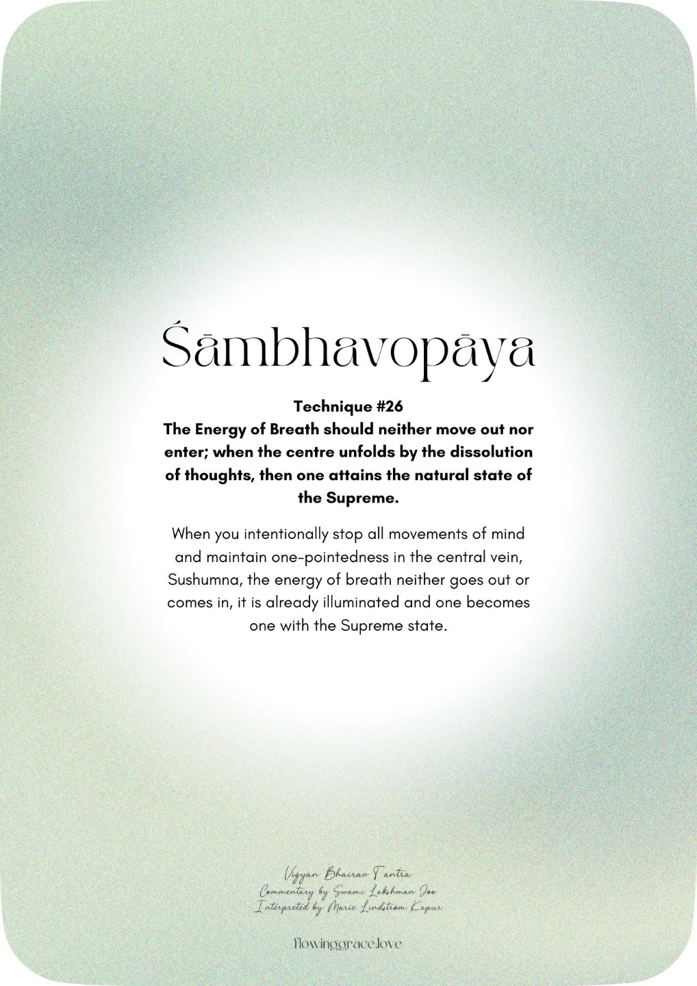 The Energy of Breath should neither move out nor enter; when the center unfolds by the dissolution of thoughts, then one attains the natural state of the Supreme.